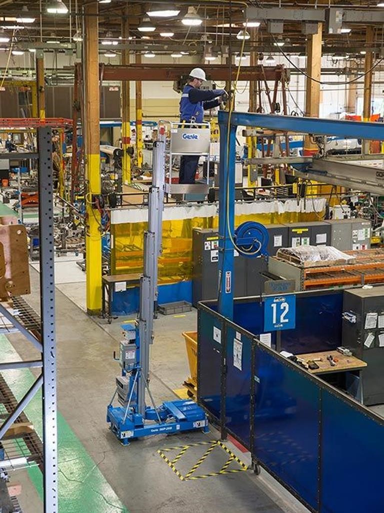 Genie® aerial work platforms are easy to use and cost effective, making them the first choice for a wide range of applications. One person can easily set them up and get to work within minutes, providing the ideal all-around tool for almost any access application. Their lightweight and compact size makes Genie aerial work platforms convenient to use in schools, churches, warehouses and more. Genie aerial work platforms also provide solutions for interior work on large construction sites, such as high rises, as well as being perfect for light-duty construction purposes.