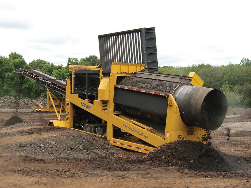 The SCM-115T Vibroscreen is ideal for a loader with a bucket measuring 5 cubic yards. The SCM-115T Vibroscreen has a screen surface of 115 square feet. The drum of 4’ diameter X 12’-3” offers a capacity of screening of up to 100 cubic yards per hour.