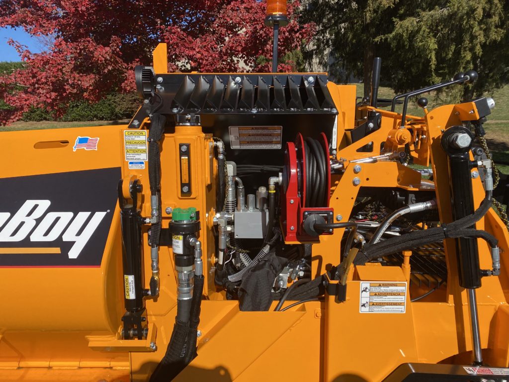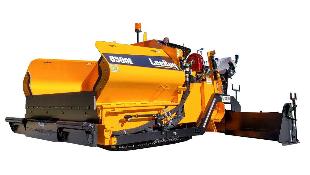 Boasting of a small footprint yet retaining a 15 foot-wide screed, the LeeBoy 8500E allows for wider and longer pulls than competitive pavers. The new and improved 8500E series paver is equipped for the next generation, with a 71 hp Kubota turbocharged diesel engine: DOC only. No regen required. This machine is enhanced with 12″ augers, heavy duty radius hopper wings, and more robust hydraulics for cooling and efficiency. The larger fuel tank increases the daily run time. These enhancements make the 8500E more productive than ever, along with less hand work, means the end user minimizes the number of stops which increases productivity and profitability. The 8500E features upgraded controls which lessens any learning curve and allows for immediate use. This paver is a true commercial class machine easily fitting onto a trailer with other complementary equipment in order to provide high revenue opportunities for its patrons.