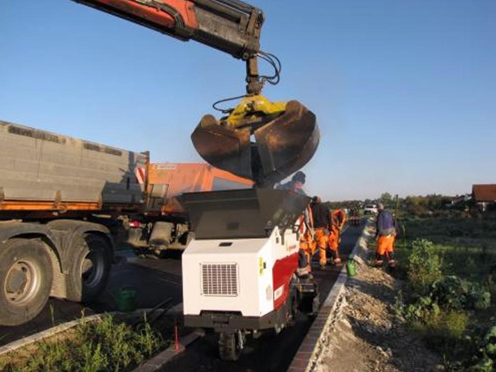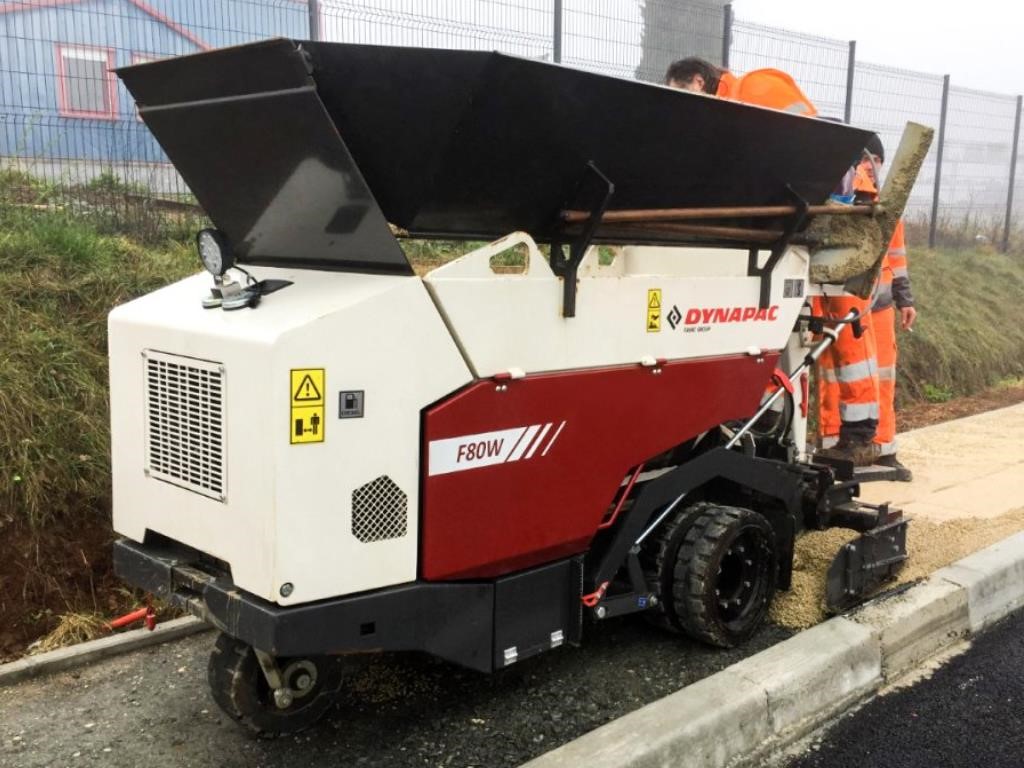 The wheeled Dynapac F80W can drive up to 5 km/h allowing for flexible move-ability on the job site. The large filling opening allows feeding by a wheel load, excavator or even with pear-shaped asphalt lorries. The Dynapac F80W is not only an excellent choice for narrow asphalt jobs, cold material like gravel or sand can be layed in a professional and efficient manner.