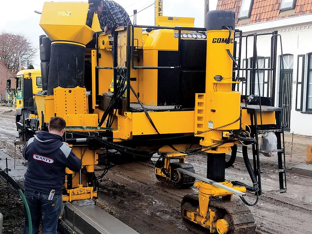 • GOMACO’s 3300 can slipform multiple applications such as curb & gutter, safety barrier, sidewalk, and undermounted slipform paving.