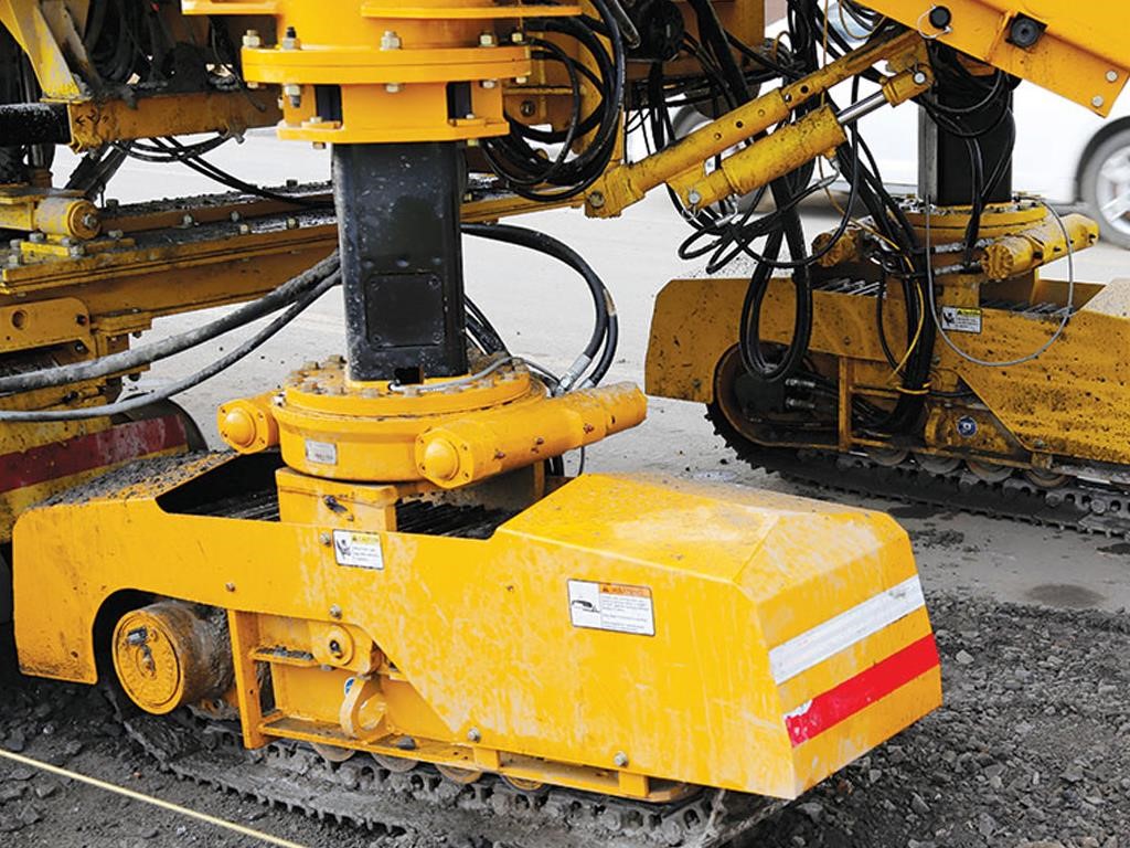 The 3300 is equipped with rotary-sensored slew drives on each of the three tracks for extreme steering. The extreme steering capabilities, combined with the 3300’s sensored All-Track Steering and sensored All-Track Positioning, make it the ultimate intelligent slipform paver. The intelligent All-Track Positioning on the 3300 includes a smart hydraulic cylinder on each of the three legs. The smart cylinders allow G+ control to know the position of all three tracks to make steering adjustments as needed.