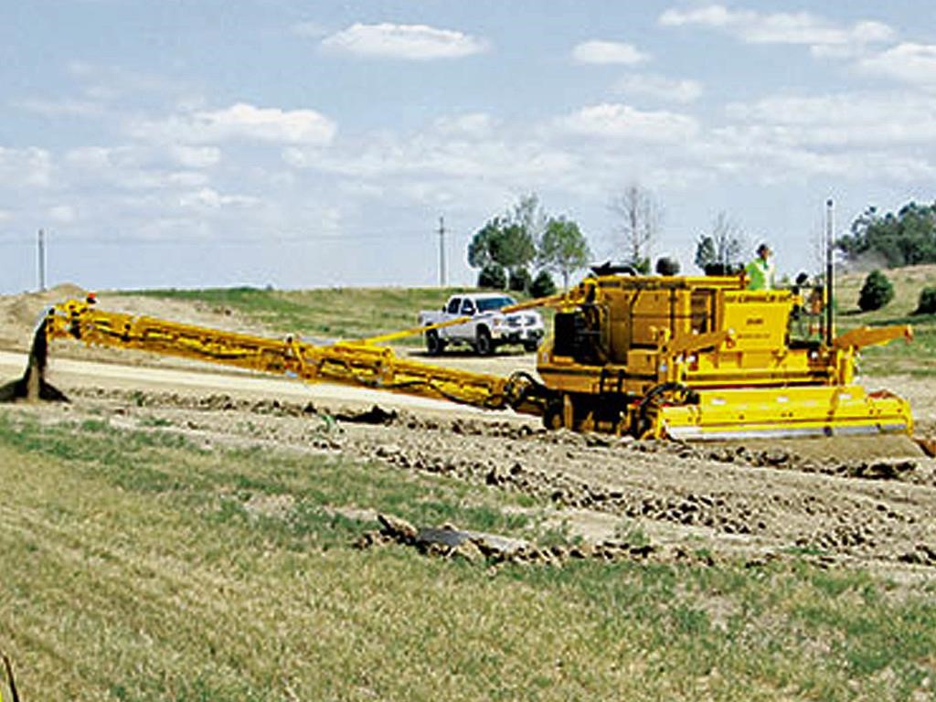 • Low PSI — The large track surface contact area and the two-track design provide a high tractive eff ort and low ground pressure on the trimmed grade.
