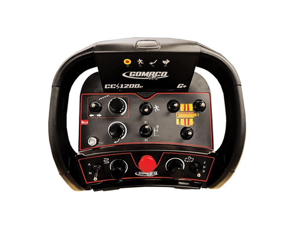 • The CC-1200e is controlled with a Radio Remote Control and puts all machine operations in the hands of the operator. The Radio Remote Control is equipped with the exclusive GOMACO G+® control system.