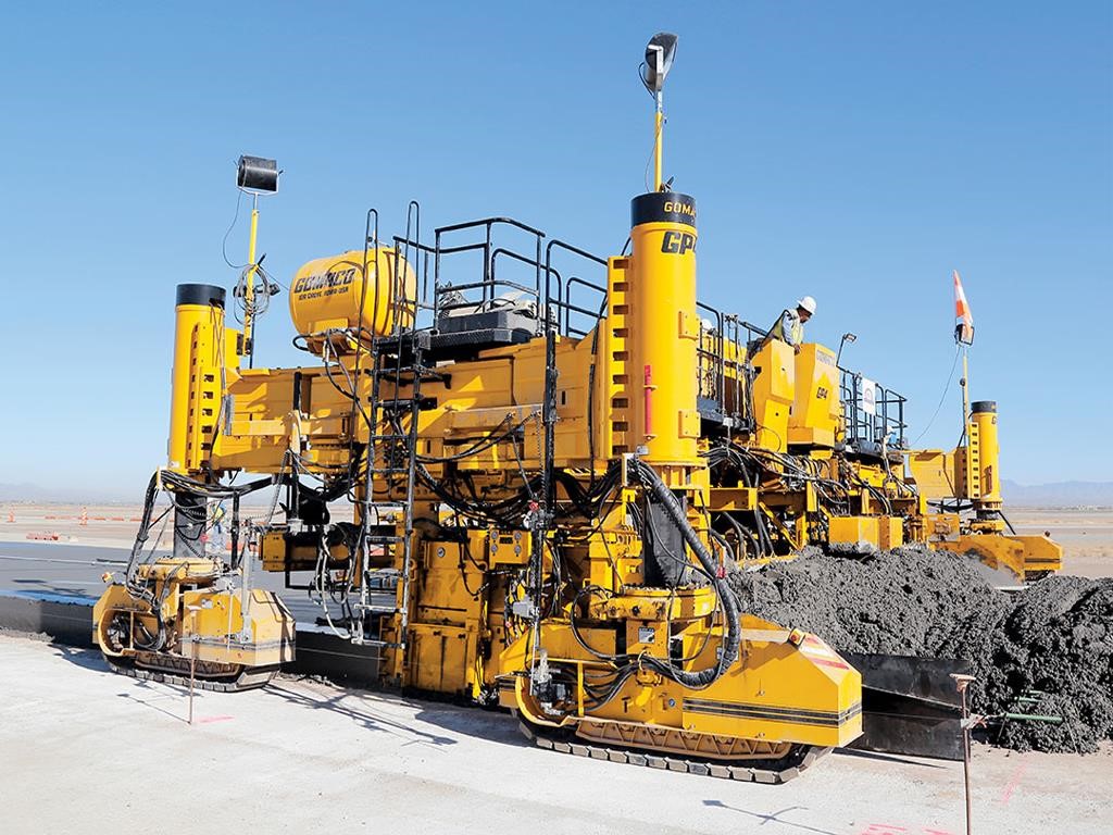 • The GOMACO GP4 is designed for paving up to 40 feet (12.19 m) wide and to accommodate multiple width changes. The GP4 is available as a two-track or four-track slipform paver.