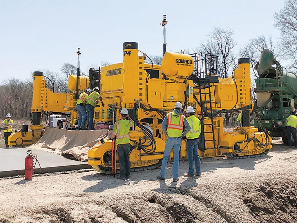 • The GOMACO GP4 has an isolated operator’s platform for operator comfort during a long day of slipform paving.