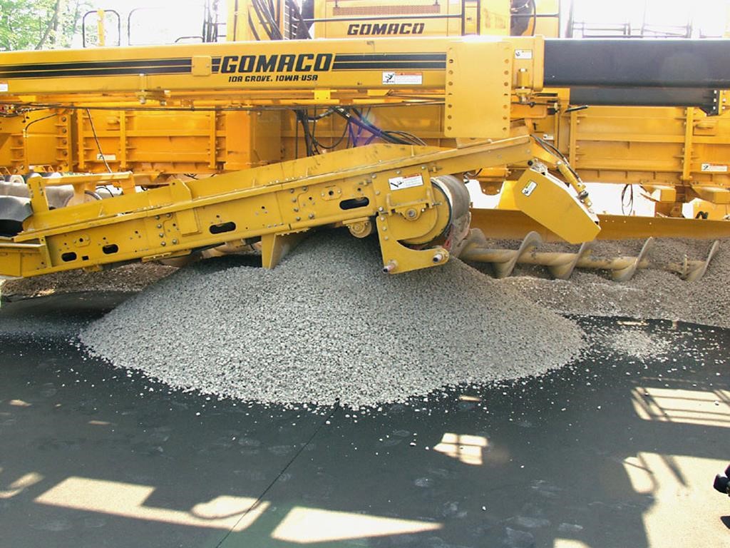 • The 5 ft. (1.52 m) wide GOMACO designed twin conveyor systems are built with the strength and durability to catch the concrete load from end-dump trucks.