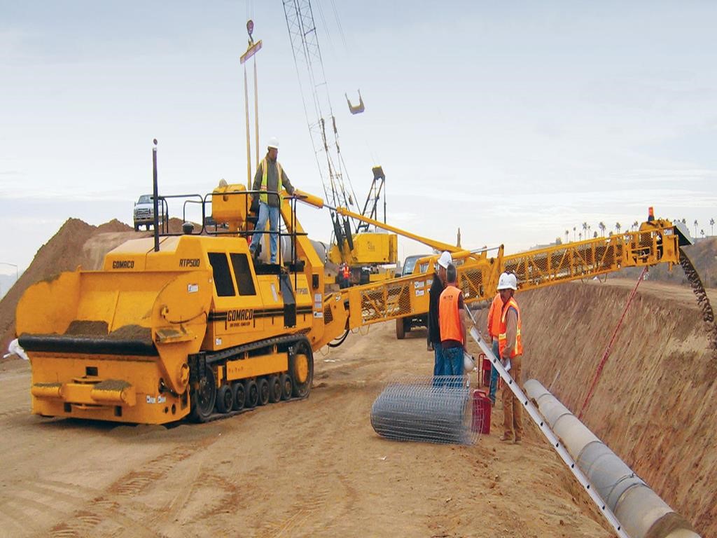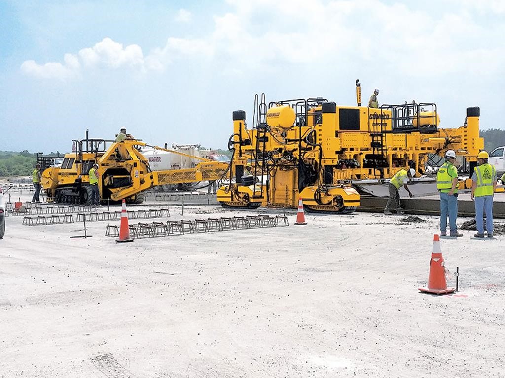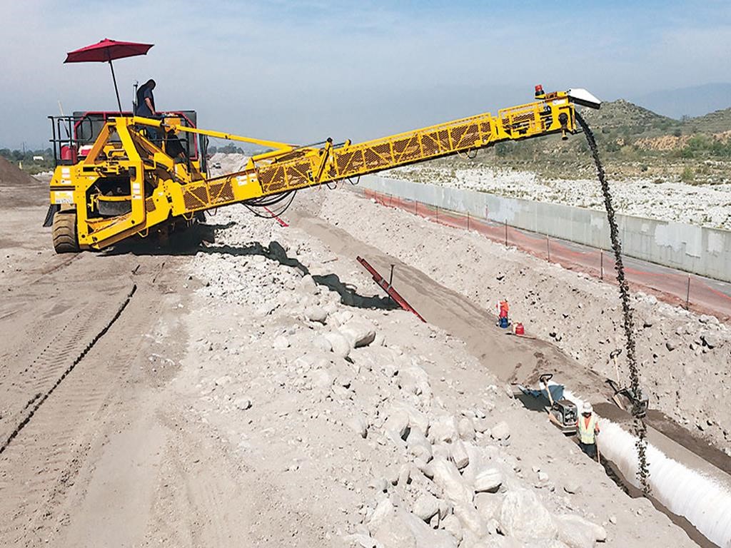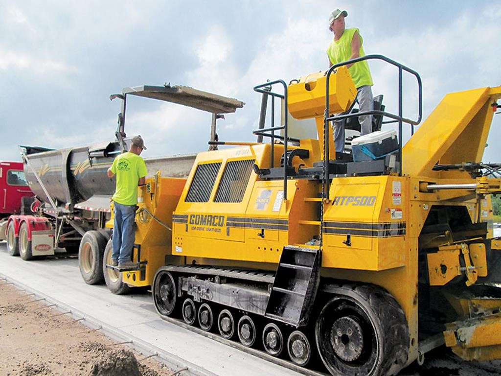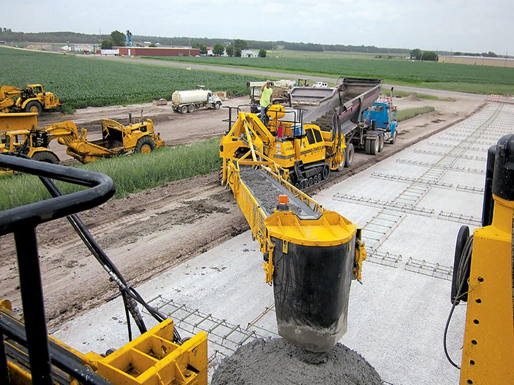 The placing conveyor allows for fast and accurate material placement from the haul road, over the stringline or other obstacles, and reaches across the grade. The conveyor deflector directs the flow of concrete at the discharge end of the conveyor.