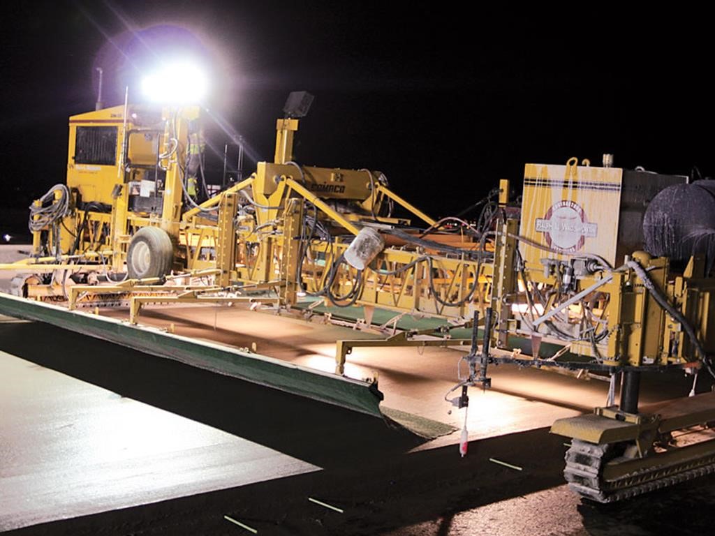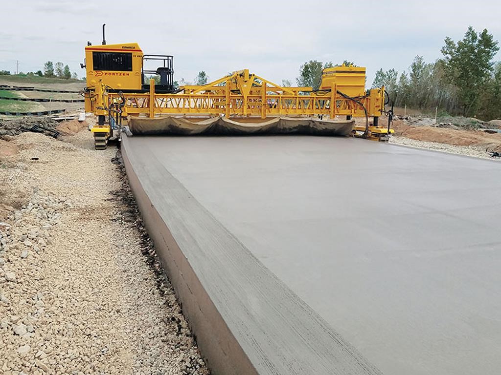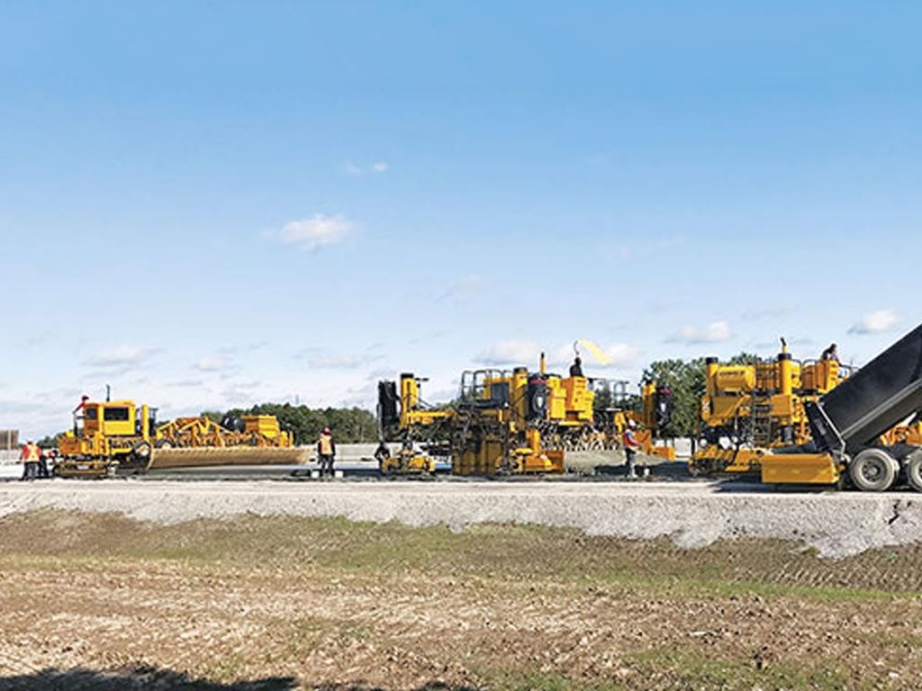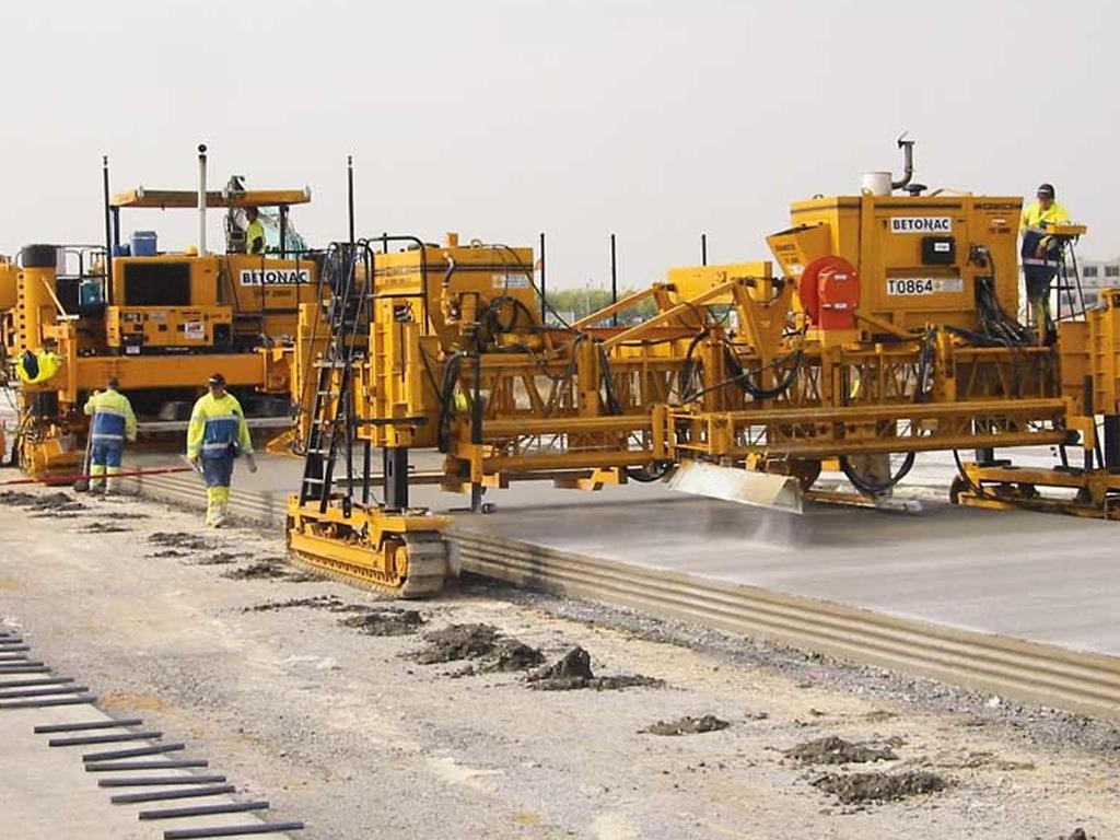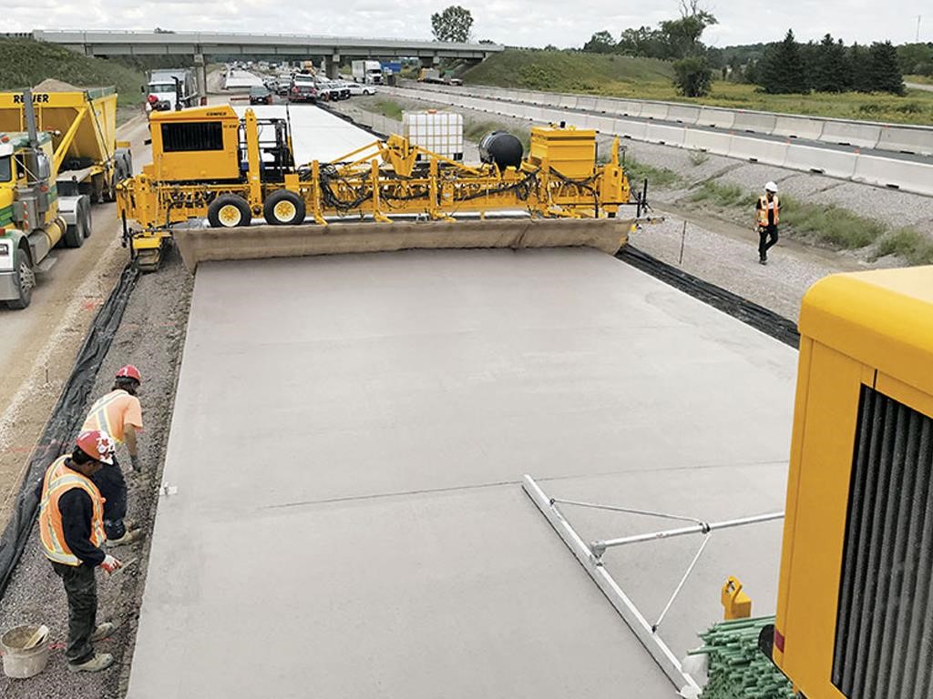 • The texturing assembly travels transversely across the width of the concrete slab. Carriage speed is variable, up to 168 feet per minute (51 mpm). Texturing wire tine members automatically pivot to trail at the end of each pass, and adjustable pressure on surface contact between the texturing member and the concrete controls the depth and angle of the wire tines. Longitudinal texturing is available where required by project specifications.