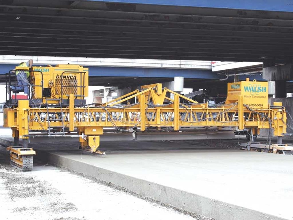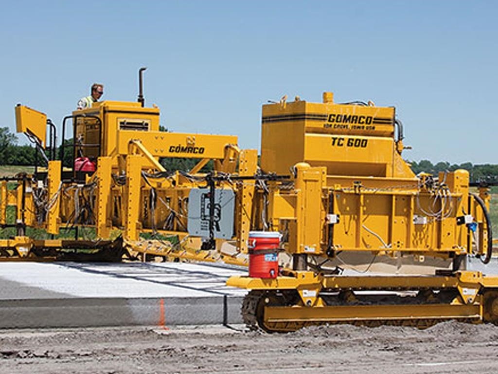 • Versatility is provided with GOMACO’s texturing/curing machines. Versatility with one machine… texturing, curing, poly-roll, and burlap/astroturf drag.