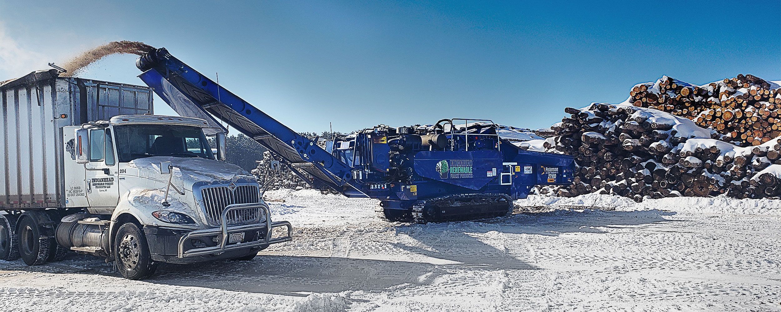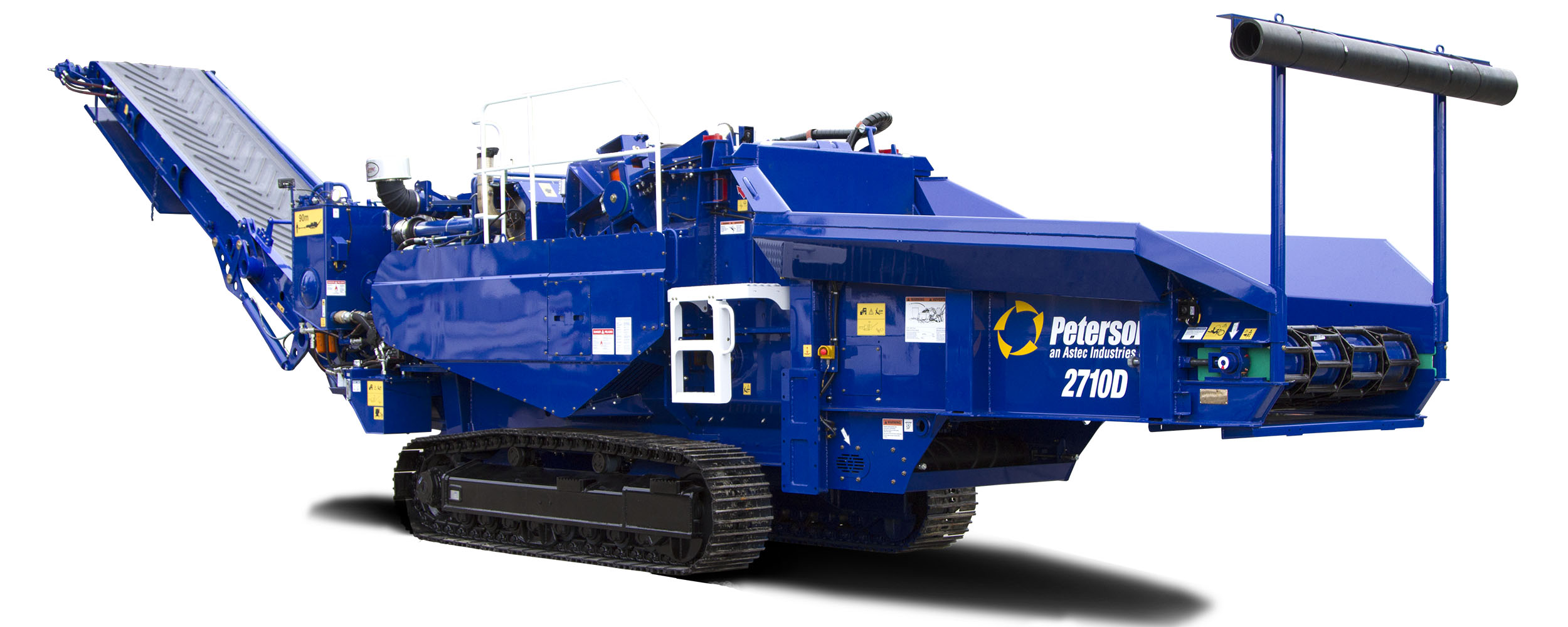 The 2710D’s large feed opening can reduce a wide range of materials. Measuring 60¾ x 32 inches (153 x 81 cm), when boosted by Peterson’s high lift feed roll, the feed opening’s maximum lift of 44 inches (112 cm), is amongst the largest in its class.