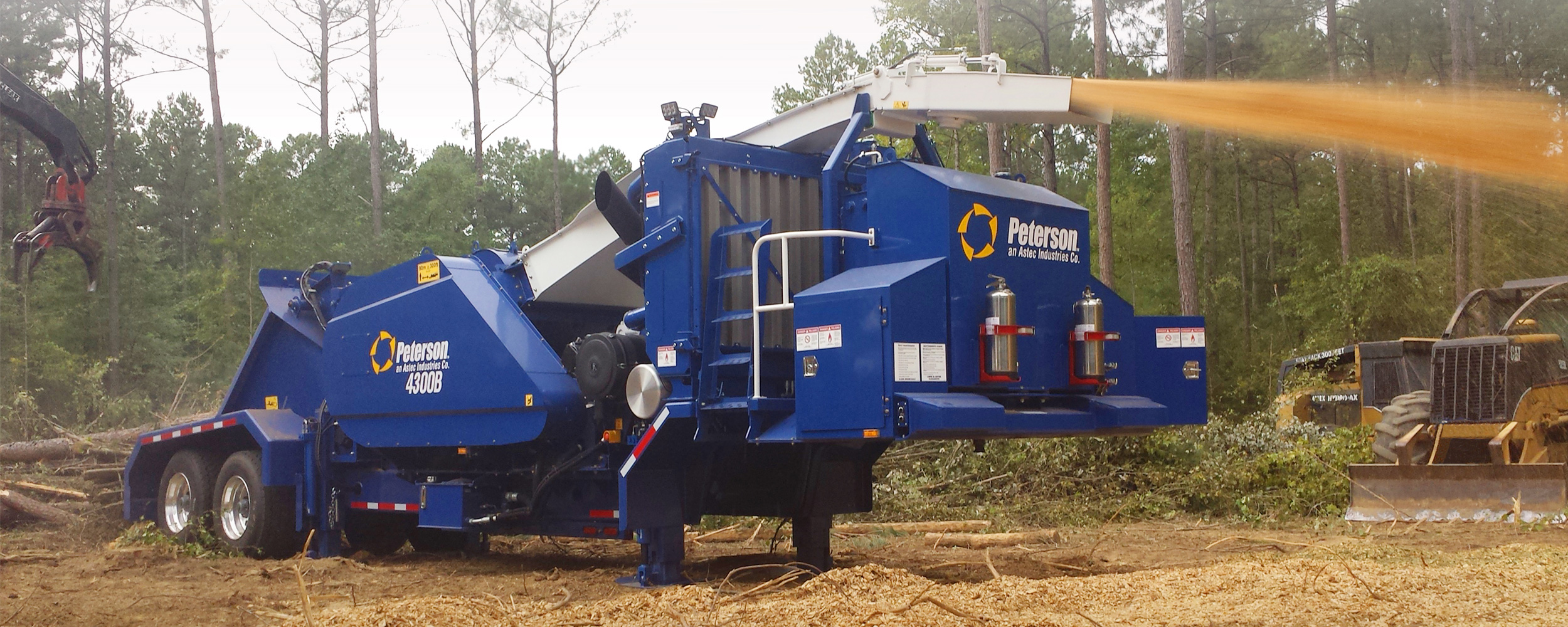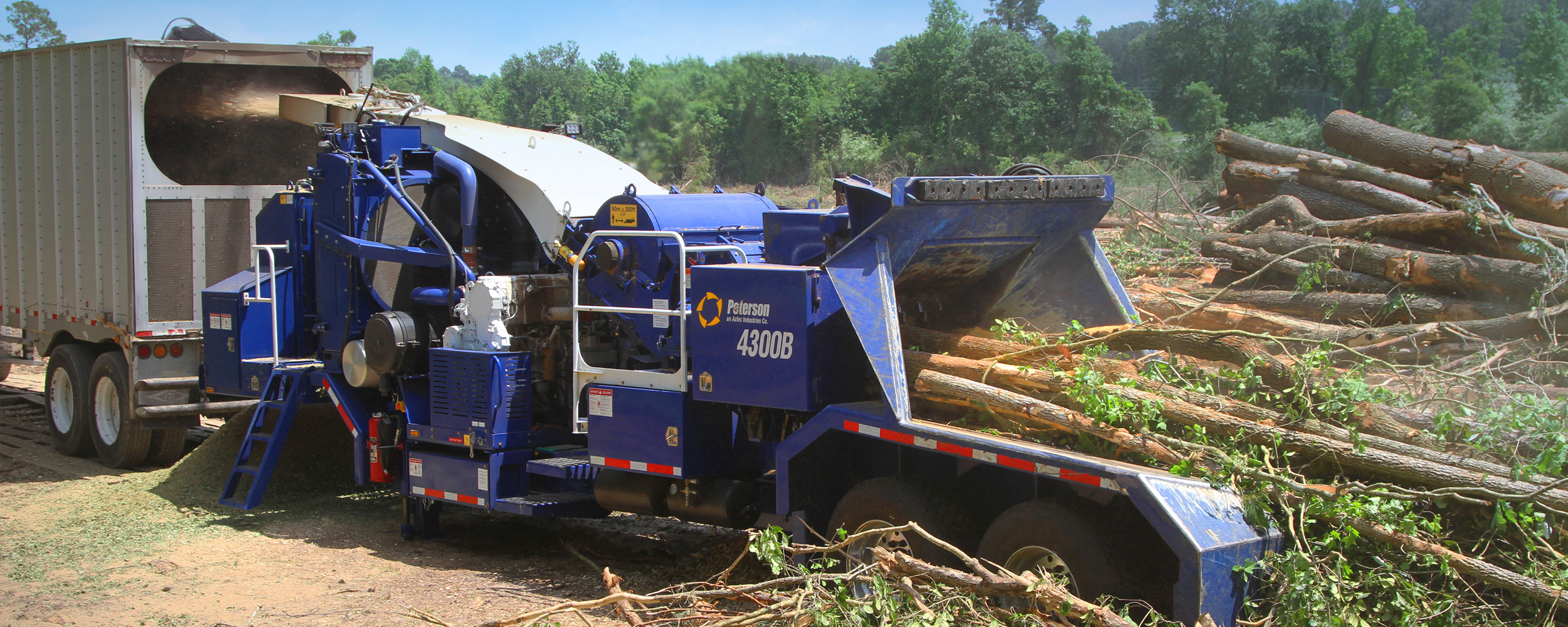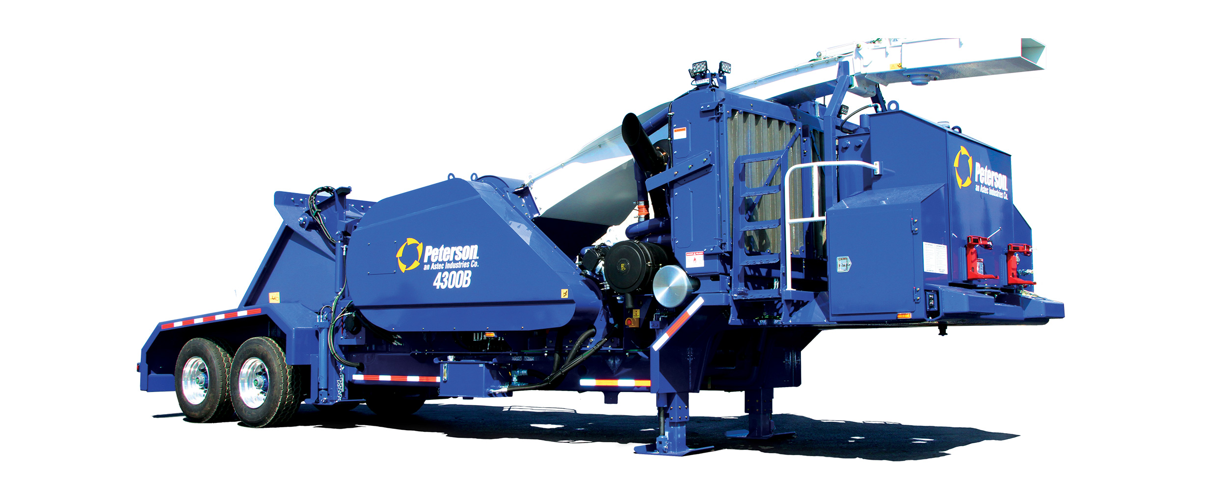 The 4300B drum chipper is the latest in a long line of high quality chipping and grinding machines produced by Peterson. The 4300B drum chipper is suited for high volume biomass producers who have a wide variety of feed material, from logs up to 26 inches (61 cm) in diameter, to brush and small feedstock.