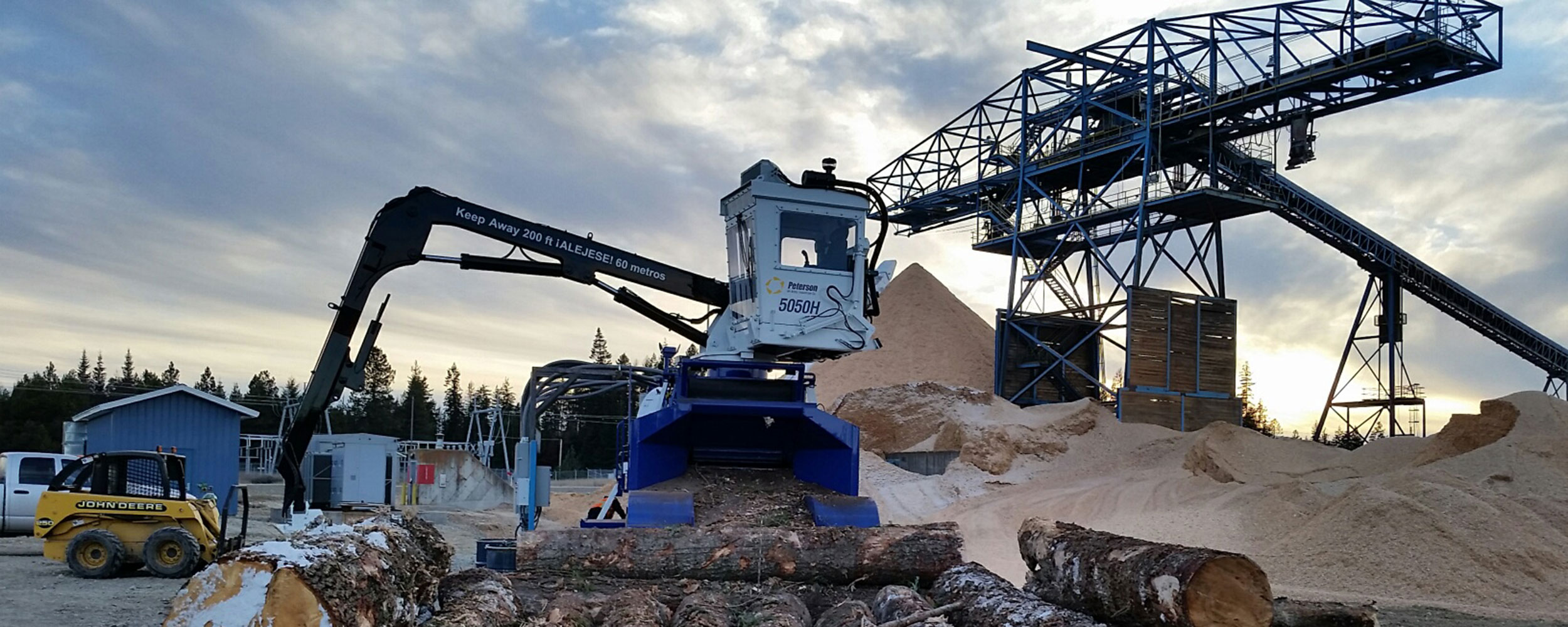 - A High Visibility, Weatherized Cab Meets OSHA Standards Ergonomic joystick controls provide precise control of the two-section knuckle-boom log loader. Top, end-loading, or high rotation long spouts are available.