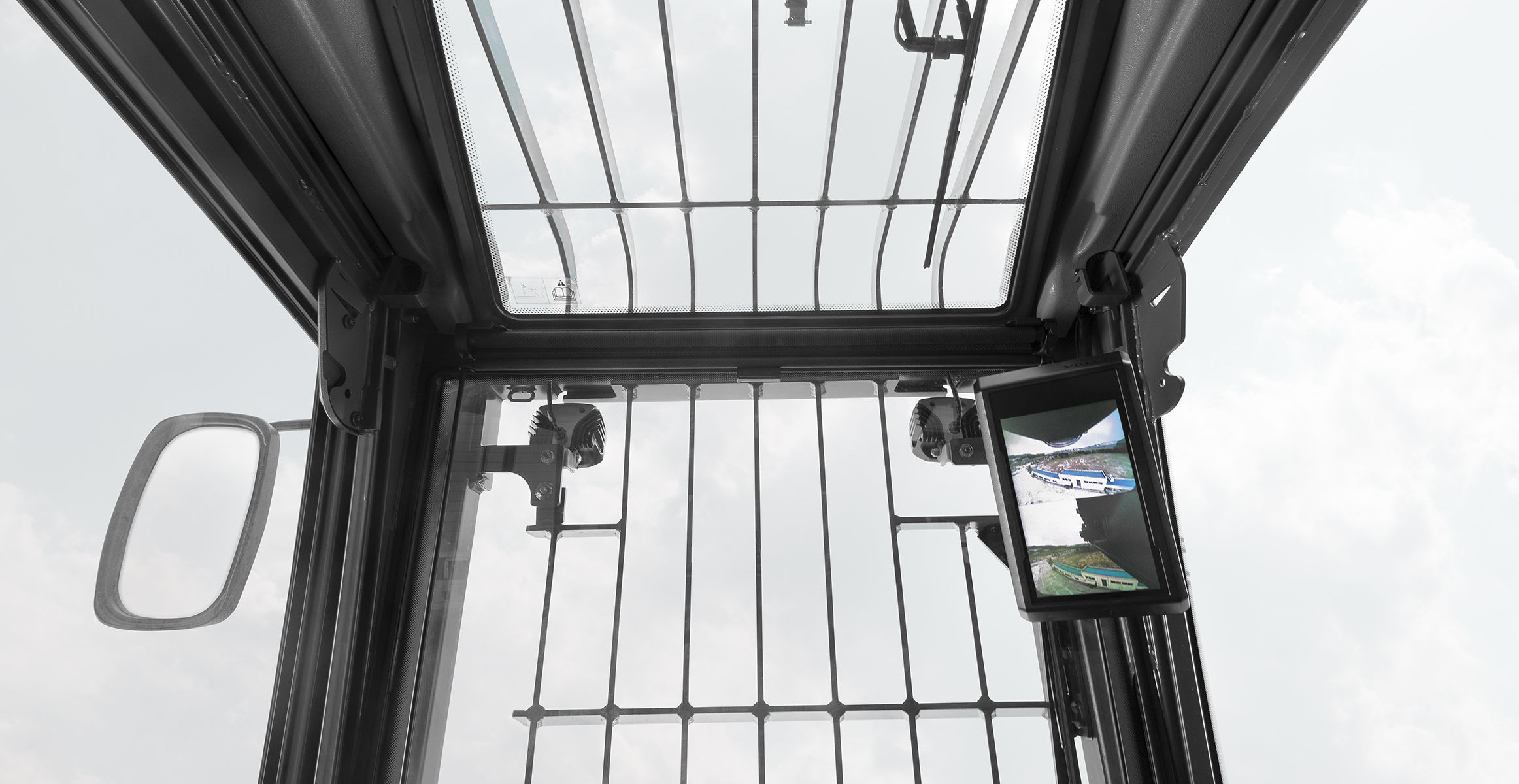 - A frame-mounted falling object guard protects the operator and cab from falling debris, enhancing safety and machine uptime.