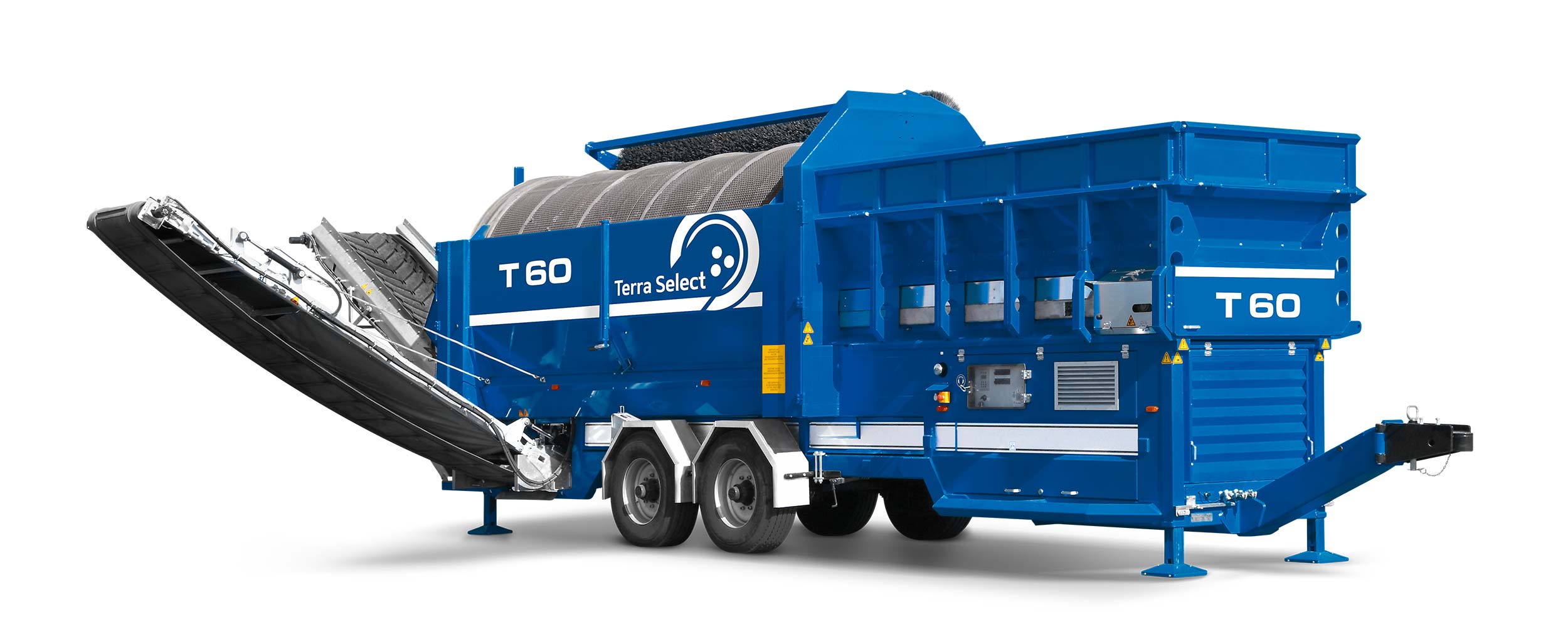 Terra Select’s T60 trommel screen is ideal for larger operations that need more throughput, but still need an easily transportable machine. With a drum length of 18′ 1″ and a diameter of 7′ 3″, the T60 has impressive screening capabilities of up to 262 cubic yards per hour!