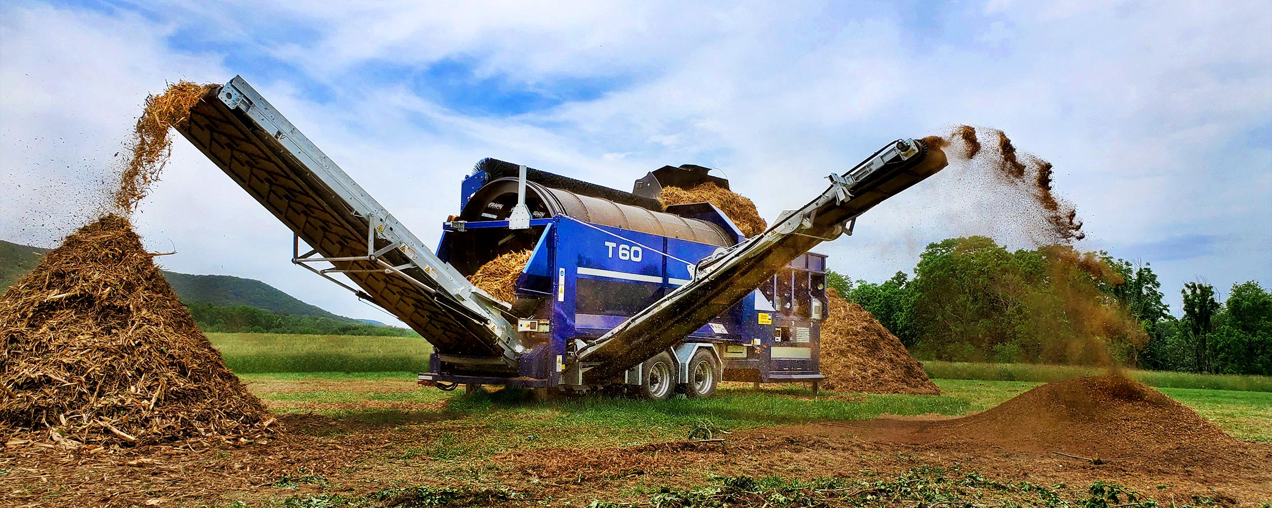 The large feed hopper makes loading the machine easy, and the feed conveyor keeps a constant stream of material fed into the trommel section of the screen.