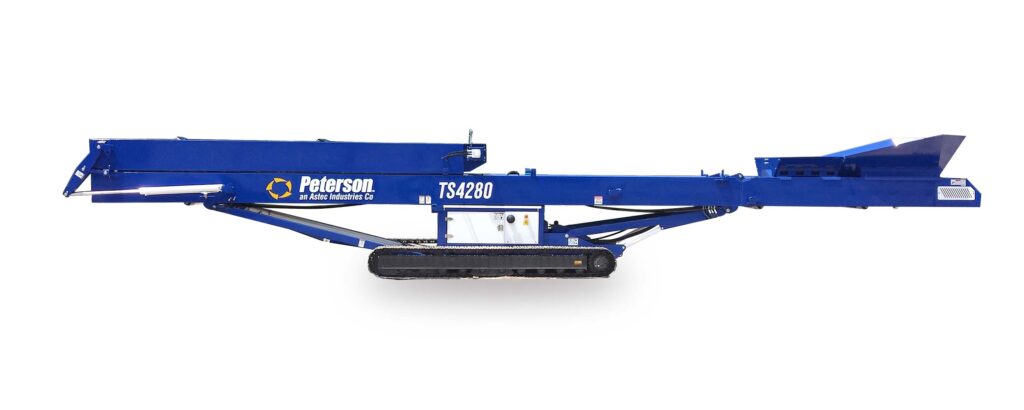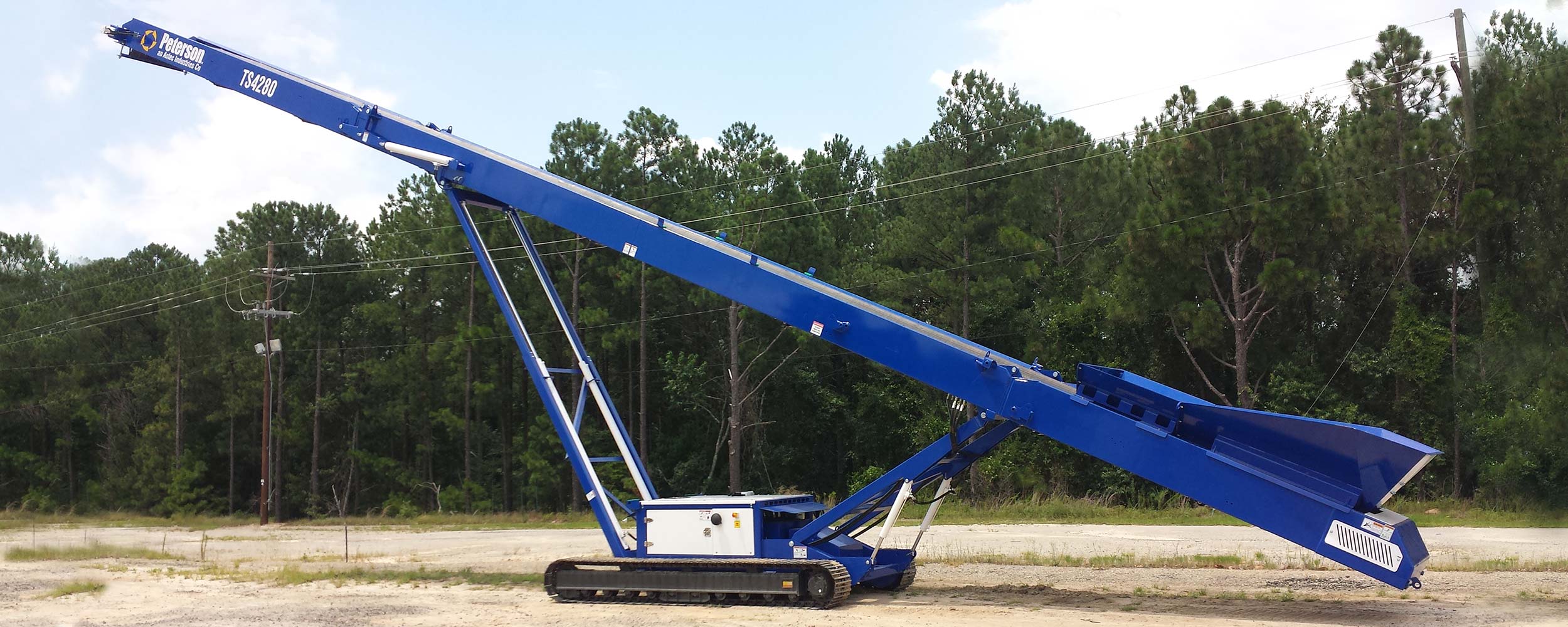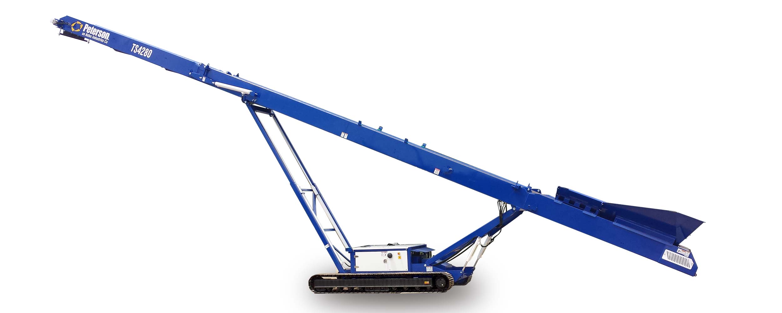 The Peterson TS4280 Tracked Stacking Conveyor is an innovative conveyor which can often eliminate the need for a wheel loader.