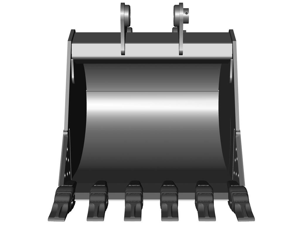 Specifically designed for tough clay or dirt with rock scattered through the soil. This bucket can be used for applications other than digging, such as demolition, and when paired with a thumb material handling. Werk-Brau does not recommend using this bucket for prying required to dig solid rock. For extreme digging conditions see the ‘Severe Duty Bucket’ and ‘V-Line Strata Rock Bucket’.