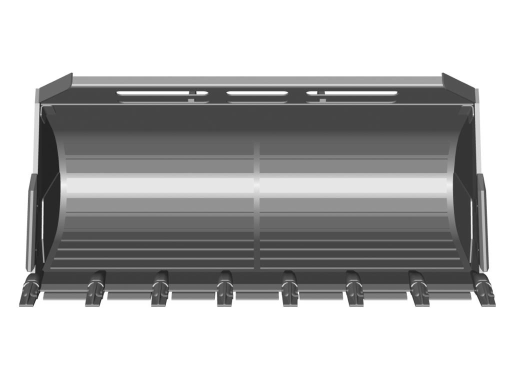 High strength, T-1 steel is utilized in all critical wear points of the bucket. Abrasion-resistant steel is used in wear-straps to reinforce bottom of bucket. Each bucket is engineered with tapered side plates to reduce wear on the buckets sides, and to allow for easier dumping.