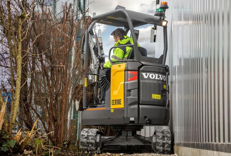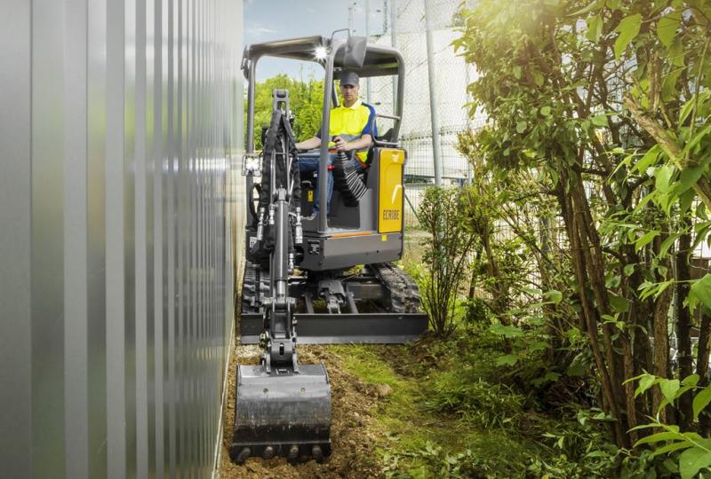 The ECR18E short-swing compact excavator is a 1.8 ton class machine that can squeeze into the tightest of spaces, and thanks to its ultra-short tail design – the shortest radius in the Volvo range – it can work close to obstacles and fit in spaces as narrow as 39 inches.