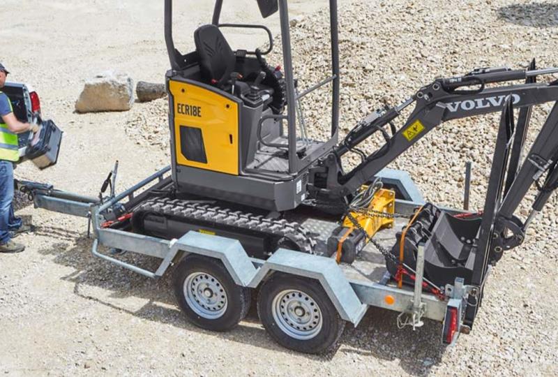- Transportation of the machine is safe and secure, thanks to its light weight and convenient design. With automatic slew lock and four easily accessed large tie-down points on the upper frame, the machine can be safely transported on a small trailer with up to three buckets and a hydraulic breaker, while maintaining a total transport weight of less than 2t.