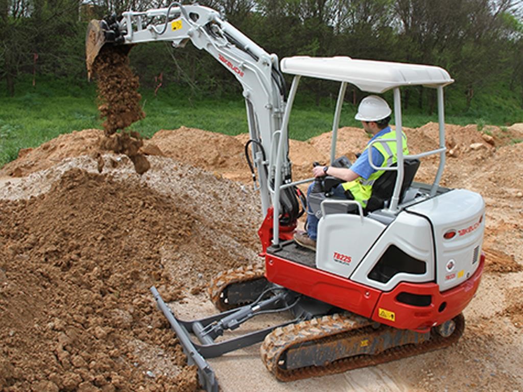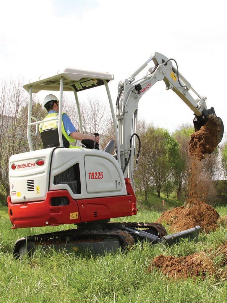 Designed to work in confined, demanding applications, the Takeuchi TB225 features many advancements in performance and technology that make it an extremely versatile and productive machine. The TB225 sets itself apart by combining features from smaller excavators, such as hydraulically retractable undercarriage, with features from larger excavators, such as electronic throttle control and electronic proportional auxiliary control. All-day comfort is provided by an adjustable suspension seat, large floor with integrated footrests, ergonomically designed pilot controls, and adjustable arm rests.