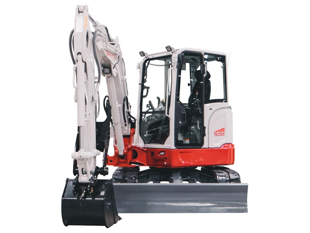 Featuring a wide array of state-of-the-art technology and a cabin that welcomes you, the Takeuchi TB350R has been designed from the ground up to ensure your success and comfort throughout the workday. The short tail swing, 5-ton TB350R is at home in a wide range of applications and delivers the power and performance you have come to expect from Takeuchi. A high flow primary auxiliary circuit delivers up to 24.6 gpm enabling you to utilize a wide variety of hydraulically driven attachments, and a standard long arm gives you greater dig depth, reach, and dump height. Impressive breakout and traction forces enhance the capability of the TB350R when working in the most demanding conditions.