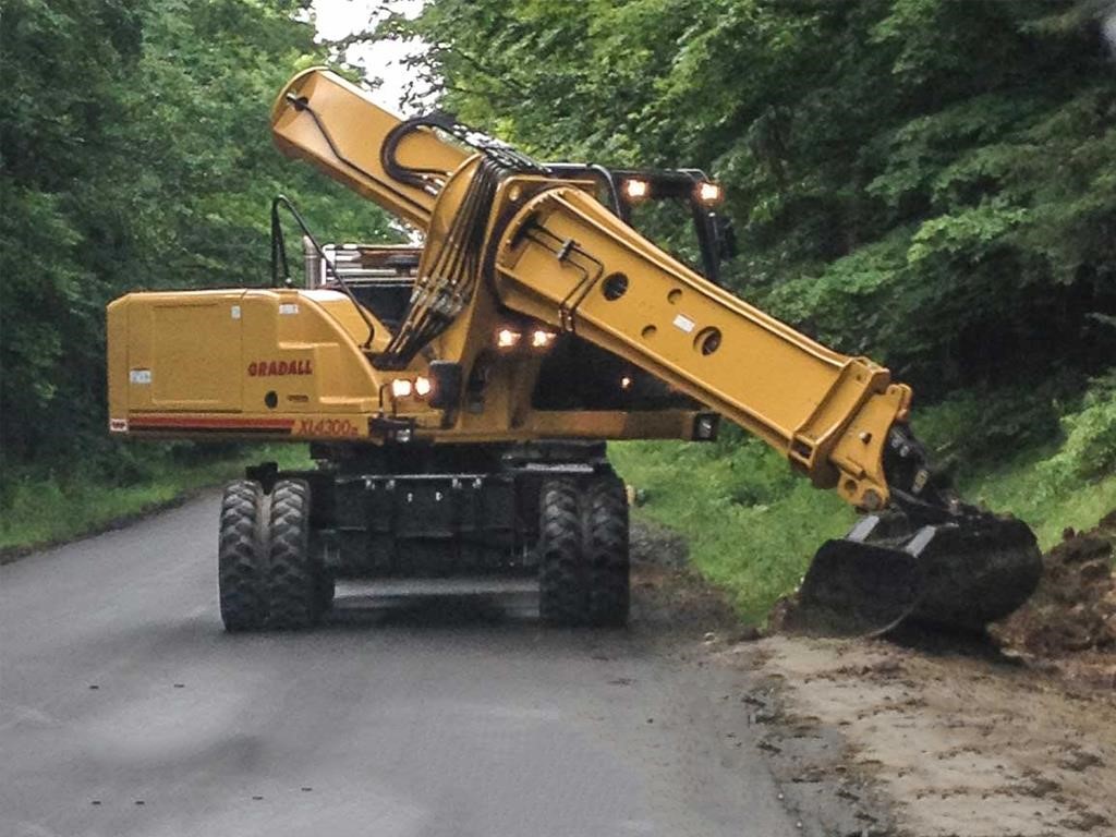 Sure-footed like a conventional crawler, but mobile on pavement as well as dirt, Gradall continues its tradition of designing and building rubber tire excavators with superior productivity as well as versatility