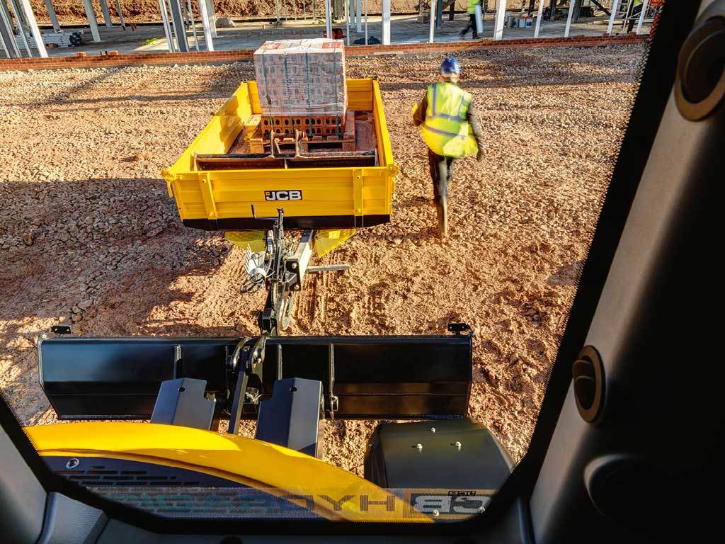 - First For Visibility: In today’s world, where space is at a premium, compact dimensions and all-round visibility are increasingly important. The JCB Hydradig 110W allows all-round visibility, with all four wheels visible from operator seat. The 109hp (81kW) T4F EcoMAX engine and other components are housed in the Hydradig 110W chassis, allowing the counterweight to be radically reduced and limiting tailswing just 5 inches. This allows the operator to view the dozer, trailer hitch and stabilizers from inside the cab without needing to slew the machine. With low-level glass and optional LED work lights, JCB Hydradig is first for easier and safer operating in tight, crowded worksites, day and night.
