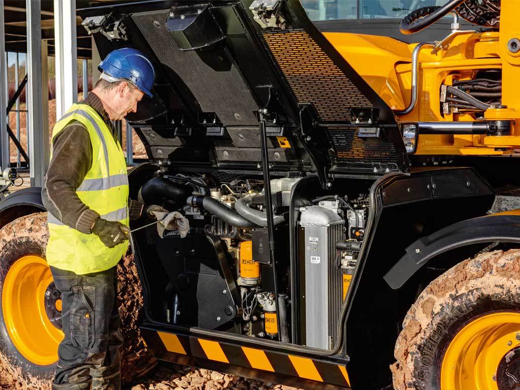 - First For Serviceability: No matter your project, your productivity depends on your ability to perform daily equipment checks quickly and easily. That’s why JCB Hydradig 110W was designed with ground-level access to all daily check points and the fuel filler, eliminating the need to climb onto the upper structure. 500-hour greasing on dig end, dozer and stabilizer grease points allow maximum uptime. The JCB Hydradig 110W is powered by an 109hp (81kW) JCB EcoMAX engine that requires no DPF, keeping servicing costs and downtime to a minimum. JCB's Livelink enables you to monitor fuel consumption, machine location and utilization of your investment. And with a class-leading SAE rating 22 percent better than its closest competitor, the JCB Hydradig 110W is first for easy maintenance. Â