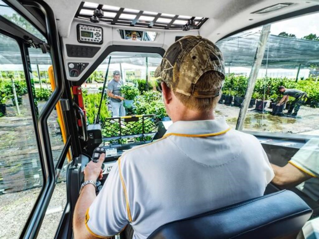 • Operate from a cab that is 47 percent larger than the competition, with a side door for easy entry and exit