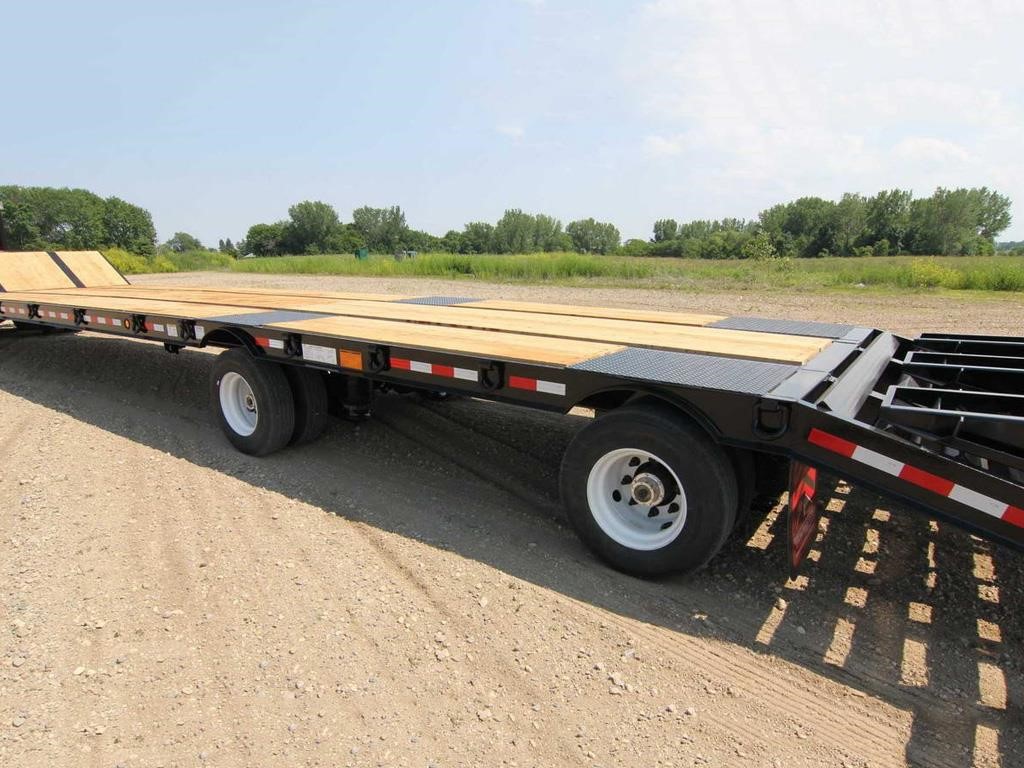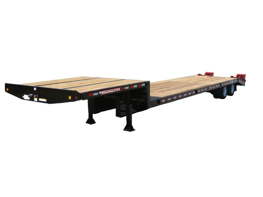 The Towmaster® T-50RG Rigid Gooseneck trailer is ready to haul your heavy equipment behind your fifth-wheel tractor. It features dual axles, two-way spring-assist ramps, Hutchens suspension and sealed wiring. A 10-foot top deck can haul a skid-loader or other smaller equipment (optional loading ramps required).