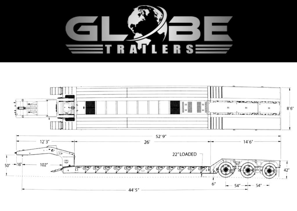 GLOBE TRAILERS LOWBOY, 50 TON — MODEL GTBN503-53-26-GG