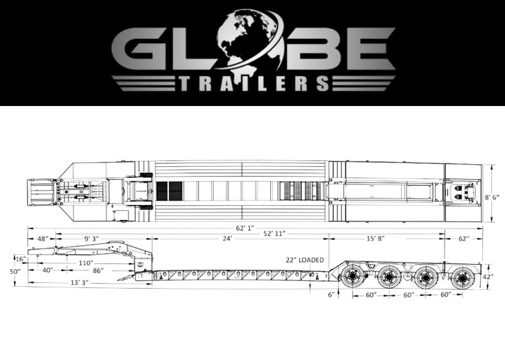GLOBE TRAILERS LOWBOY, 55 TON — MODEL GTBN553-53-24-HGG