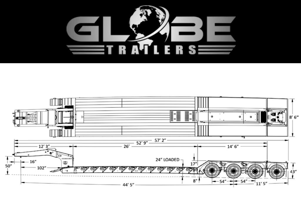 GLOBE TRAILERS LOWBOY, 55 TON — MODEL GTBN553-53-26-HGG