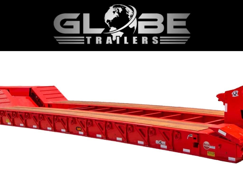 3 AXLE, DETACHABLE NON GROUND BEARING, MAXIMUM PAYLOAD 110,000 LBS. All Globe Trailers are 100% powder coat finished. The entire process takes place at Globe’s manufacturing facility. This eliminates the possibility of contamination occurring in transit between process phases. The process starts with sandblasting the trailer to near white, preheating the trailer steel in a dedicated, gas fired oven to optimum bonding temperature and applying an electrostatically charged zinc rich primer. The trailer then goes back in the oven to allow the primer to bond. After the primer has bonded, a top coat chosen from one of Globe Trailers’ 188 color options is applied before once more going back in the oven to cure. The result is a durable, easily cleaned finish that protects the trailer from corrosion and ensures a long service life.