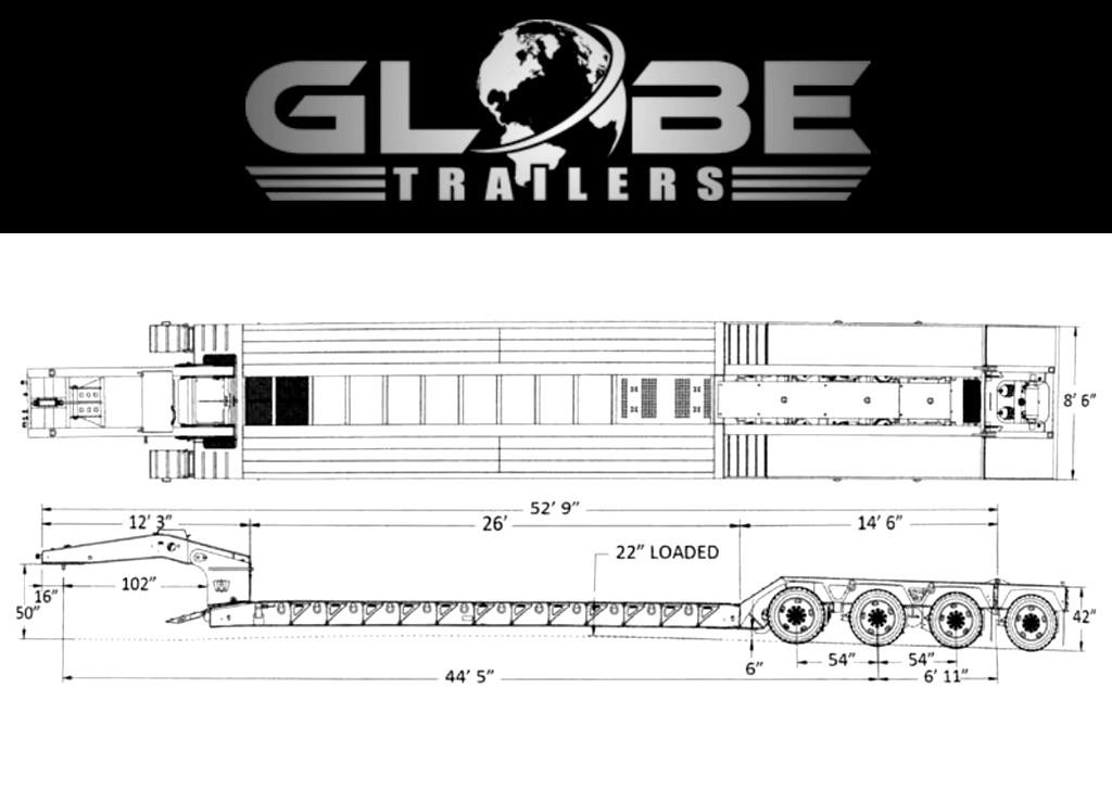 GLOBE TRAILERS LOWBOY, 55 TON — MODEL GTBN553-53-26-HGG