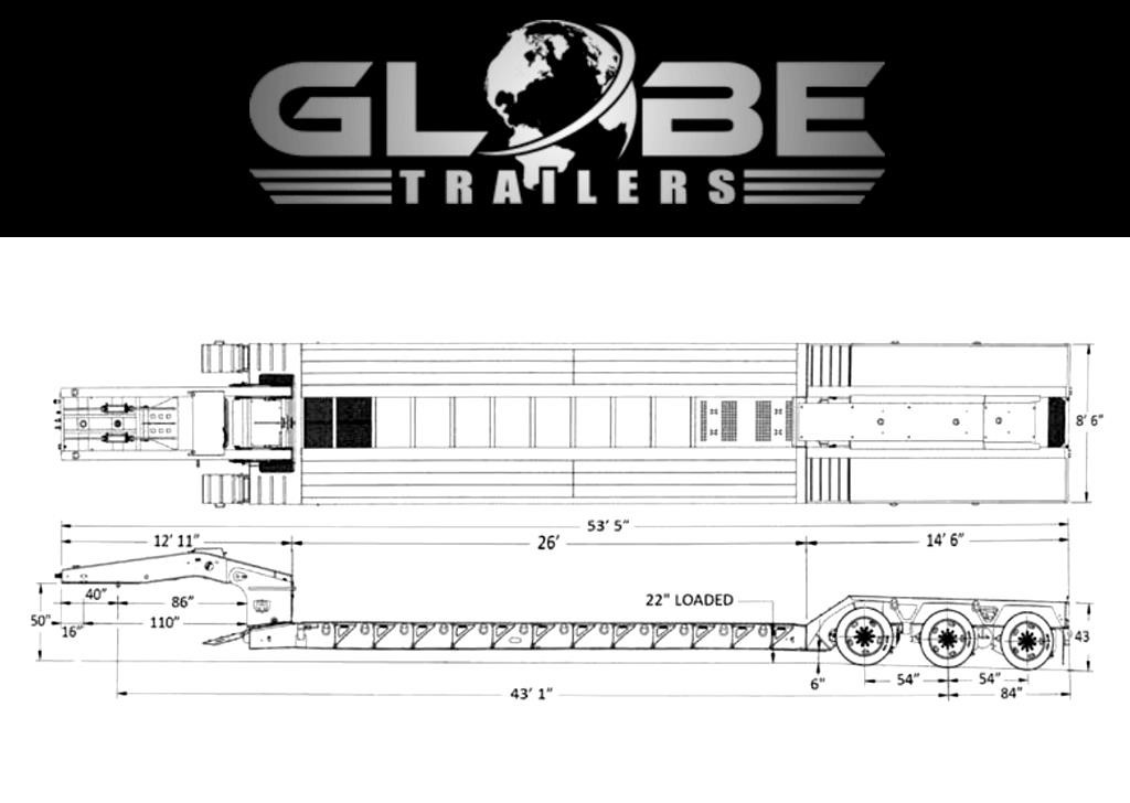 GLOBE TRAILERS LOWBOY, 55 TON — MODEL GTBN553-54-26-HGG