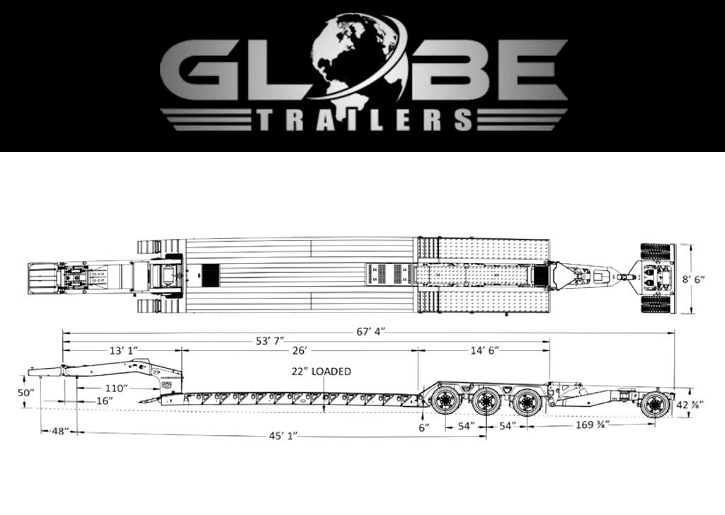 GLOBE TRAILERS LOWBOY, 55 TON — MODEL GTBN553-54-26-HGG