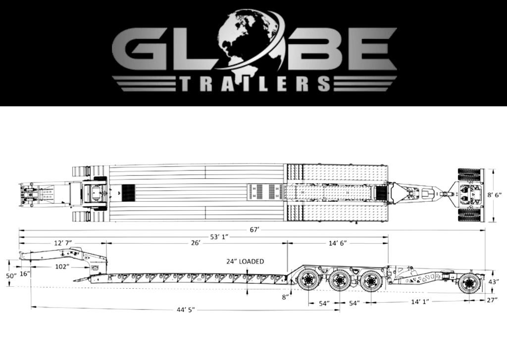 GLOBE TRAILERS LOWBOY, 55 TON — MODEL GTBN553-53-26-HGG