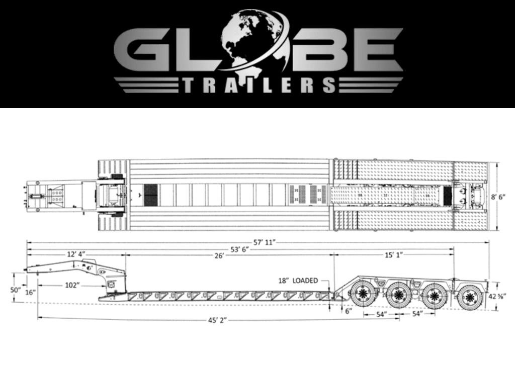 GLOBE TRAILERS LOWBOY, 55 TON — MODEL GTBN553-53-26-HGG