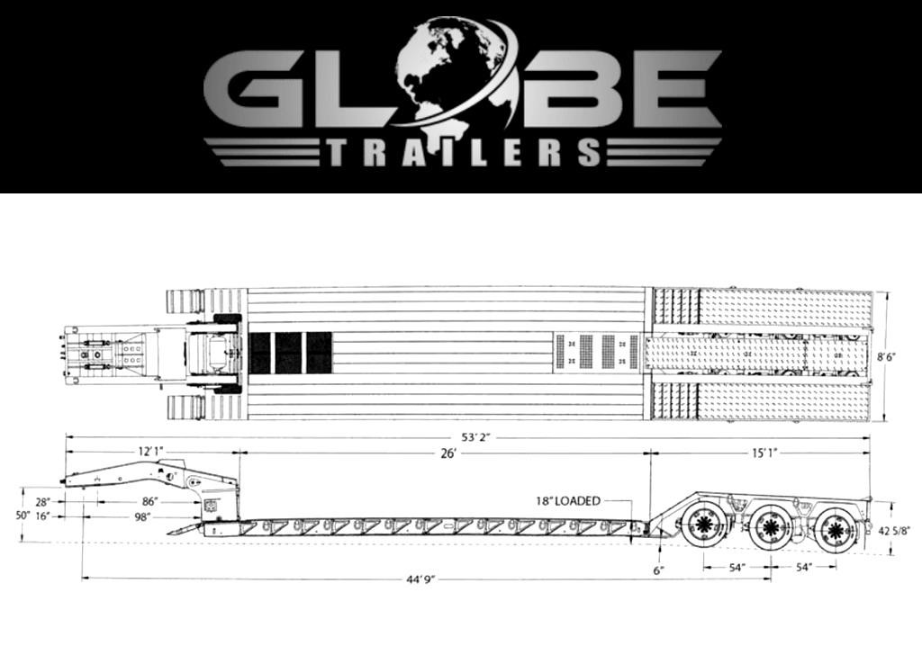GLOBE TRAILERS LOWBOY, 55 TON — MODEL GTBN553-53-26-HGG