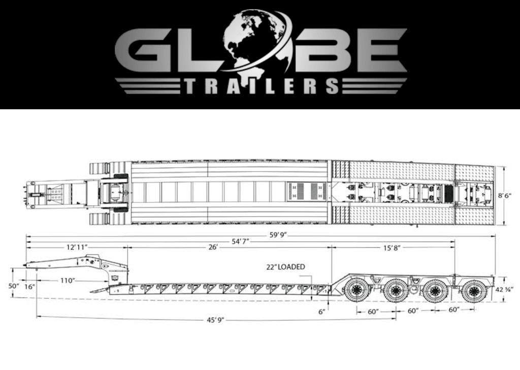 GLOBE TRAILERS LOWBOY, 55 TON — MODEL GTBN553-53-26-HGG