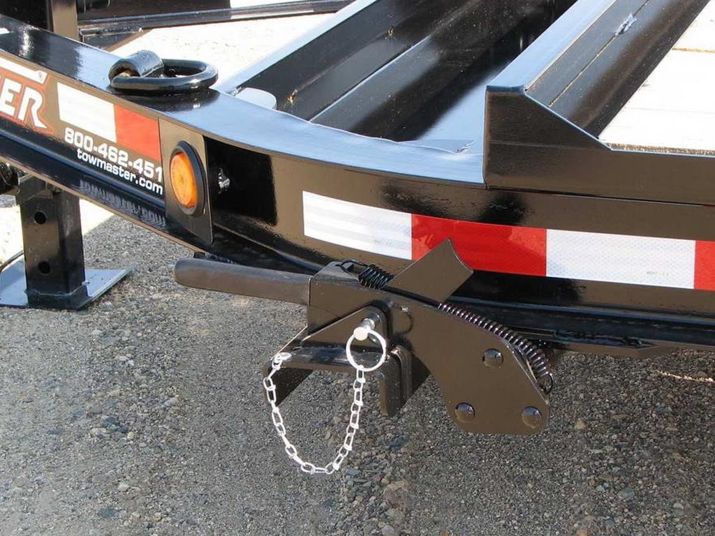 The Towmaster® drop-deck tilt trailers are popular with rental dealers and small contractors. There are no ramps to hassle with; simply tilt the deck and drive on or off. This trailer is built on our cold-formed I-beam tongue and main frame for tough durability. The tilt deck trailer features a single lever twin-latch system, knife-edge approach plate, rubber-ride axles and adjustable hitch. A deck cushion cylinder eases the deck back into transport position and prevents equipment from slamming the deck down.