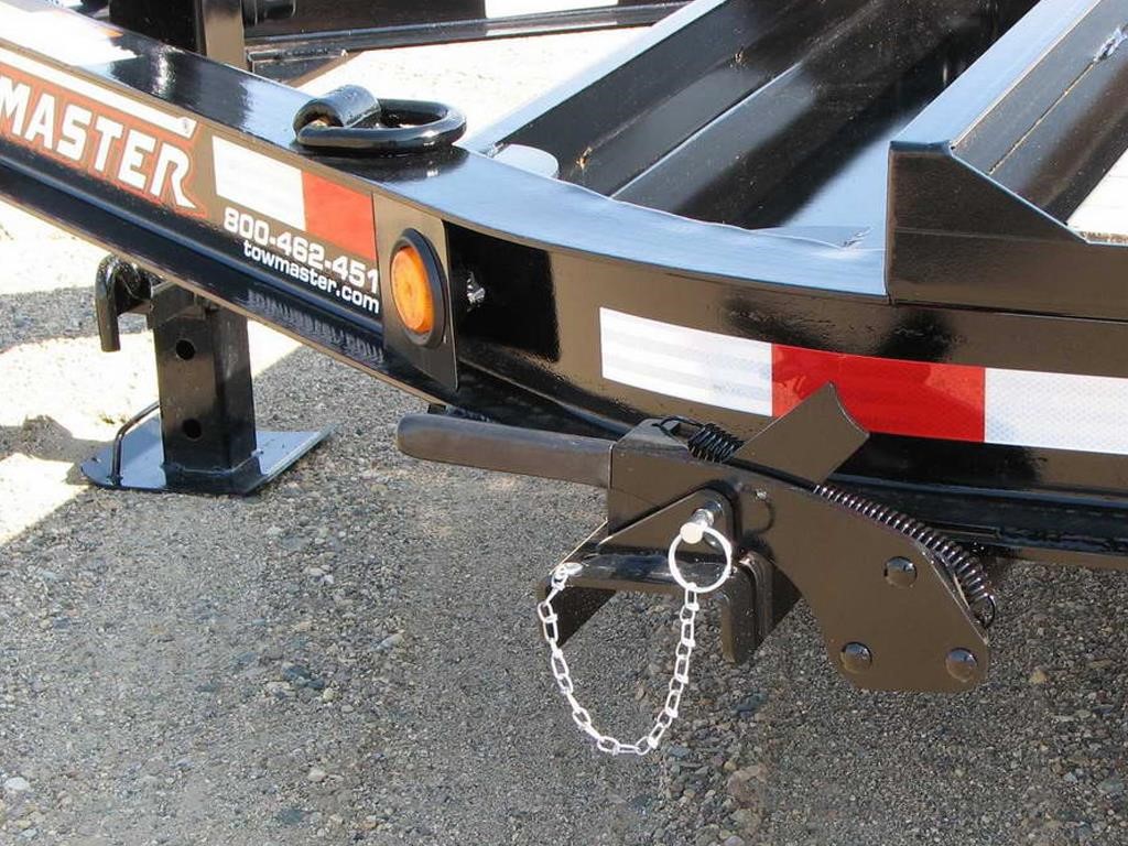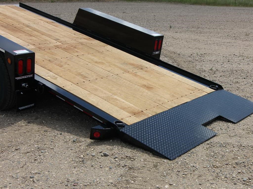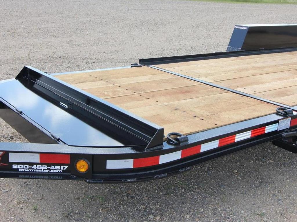 The Towmaster® drop-deck tilt trailers are popular with rental dealers and small contractors. There are no ramps to hassle with; simply tilt the deck and drive on or off. This trailer is built on our cold-formed I-beam tongue and main frame for tough durability. The tilt deck trailer features a single lever twin-latch system, knife-edge approach plate, rubber-ride axles and adjustable hitch. A deck cushion cylinder eases the deck back into transport position and prevents equipment from slamming the deck down.
