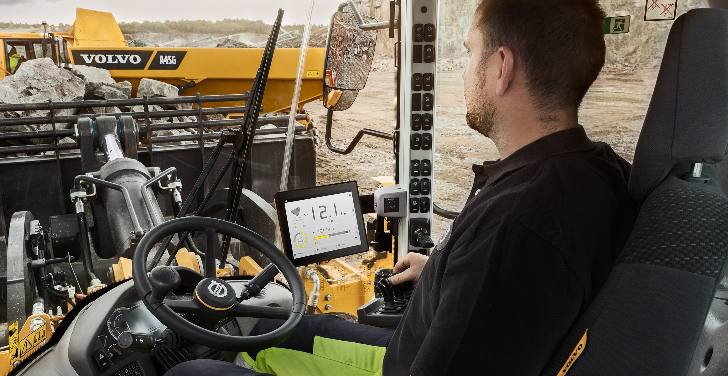 • Monitor the amount of material moved and easily manage work orders with Load Assist - a dynamic load weighing system with ±2% accuracy, powered Volvo Co-Pilot.