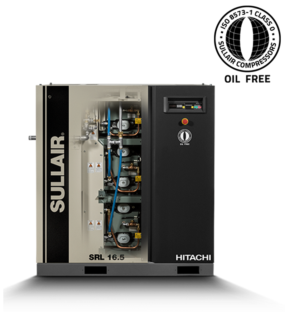 OIL FREE AIR RELIABLY, EFFICIENTLY AND QUIETLY Built on Hitachi engineering, the SRL Series represents advanced scroll compressor technology to meet your oil free compressed air needs — today and tomorrow. Maximizing efficiency means more than just having an efficient air compressor. All SRL Series compressors feature built-in logic to help utilize the air compressors most efficiently — which not only saves wear and tear on the compressor, but also provides energy savings — which saves you money! SRL Exclusive Scroll and Pump Design Integrated Design for Maximum User Benefits Quiet Operation — as low as 48 dB(A)
