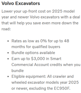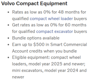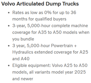 Experience Volvo Construction Equipment with 0% Financing* on Select Machines.